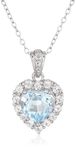 - Feature : Sterling silver necklace featuring heart-shape gemstone pendant with round-cut white topaz on halo and bale / The natural properties and composition of mined gemstones define the unique beauty of each piece. The image may show slight differences to the actual stone in color and texture. / Gemstones may have been treated to improve their appearance or durability and may require special care. / Imported