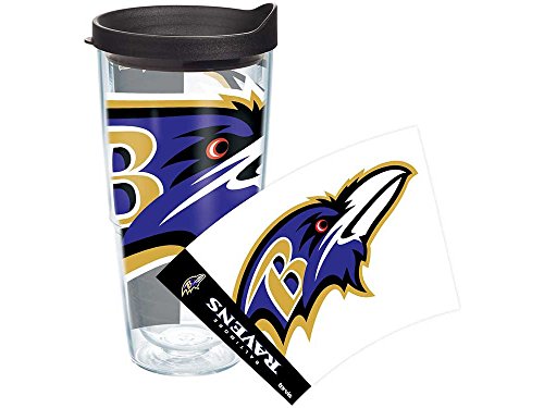 -. Title : Tervis NFL Baltimore Ravens Colossal Wrap Tumbler with Black Travel Lid, 24 oz, Clear