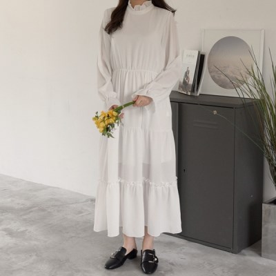러브스토리 플레어 롱원피스 러블리한 무드의 프릴넥 롱 원피스를 소개해드릴게요 여성스러운 포인트를 더해준 롱 원피스에요 부드러운 안감이 부착되어 있어 비침이 심하지 않고 이너웨어 없이 입으셔도 까끌거림 없는 착용감을 선사해 드리는 제품이에요 흰색 같은 경우는 요즘 인기인 셀프웨딩 촬영 의상으로도 추천드리고 있는 제품 이에요 색상은 기본 블랙,화이트 두가지 컬러로 준비해드렸으니 원하시는 무드에 맞춰 좋은 선택 해보세요