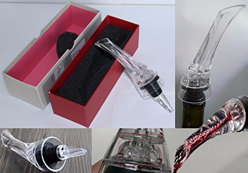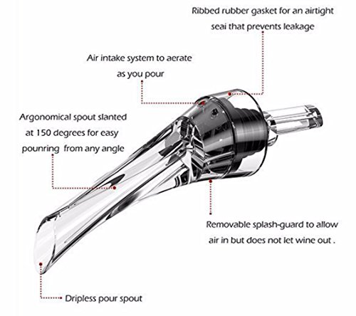 -. Feature : Lightweight. Design allows for easy storage. This allows you to take them with you wherever you go, and prevents them from taking up too much space. Double air intake system. This system ensures maximum exposure to oxygen ensuring that your wine is fully aerated, unlocking premium flavors and aromas as it enters the glass. / Extremely sturdy. Made of high quality materials The rubber stopper is tapered and ribbed to create a leak-free seal for wine bottles of all sizes and the acrylic pour spout is notched and Ergonomically slanted for easy drip-free wine pouring. Ultimate gift. Make a great gift for weddings, birthdays, or any other type of occasion for a wine lover. / Easy to use. Effortlessly fits securely in any wine bottle. Simply press the aerator over the bottle, and then start pouring providing hand-free aerating. Simply hand wash with warm water and let dry. / LIFETIME SATISFACTION GUARANTEE! If you are not completely satisfied with your purchase, we offer a lifetime money back guarantee with every purchase!