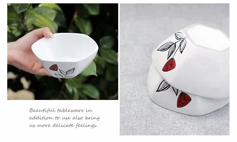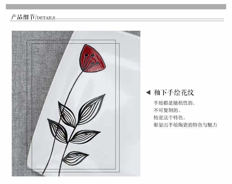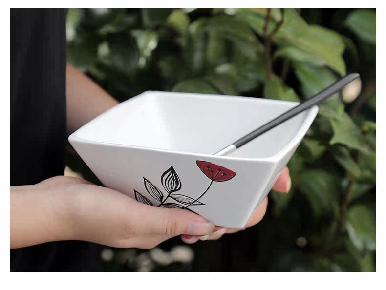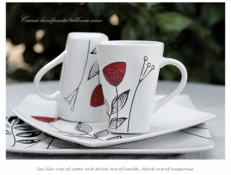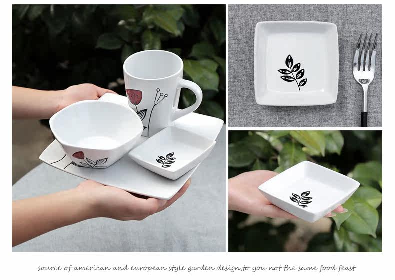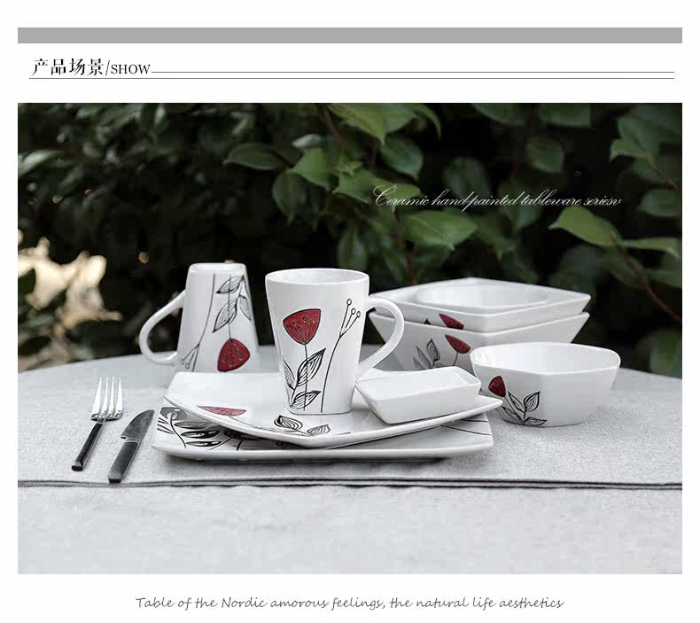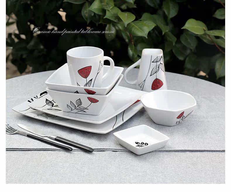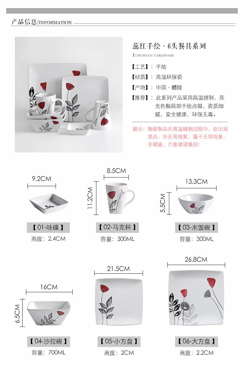 创意陶瓷个性餐具组合套装碗碟碗盘家用日式红蕊6件手绘套装系列