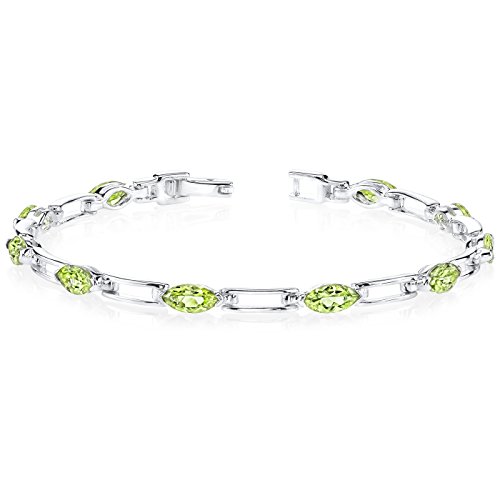 -. Title : Peridot Bracelet Sterling Silver Rhodium Nickel Finish 5.75 Carats Marquise Cut