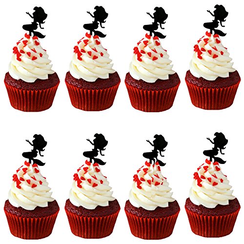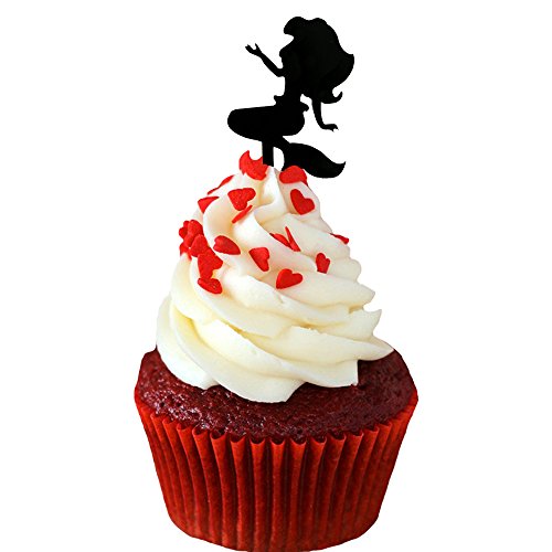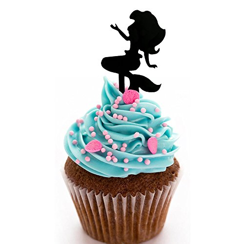 Ecape Lovely Mermaid Cupcake Toppers Reusable Cupcake Picks for Party Cake Decorating 8 Pcs a Set Black Acrylic (Mermaid1)