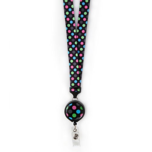 Yeah baby you've got it... the 80s are back, and popping with color. Nothing basic about this black-background lanyard just bursting with color bubbles. It's just what you needed to accessorize the turquoise leg warmers, fuchsia headband, and lime green blazer ... with shoulder pads. Well, maybe not, but it will make your dedication to work "pop" as you come through the doors. So channel your inner Bananarama and go for it. Rockin' Dots will take care of the rest. Lanyard specs: 36" length; soft, washable polyester; breakaway safety clasp; removable badge reel.