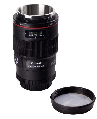 - Feature : Designed after the classic Canon 100mm f/2.8L Macro lens / Lid designed after the lens cap / Insulating structure, stainless steel interior, plastic exterior / Must have item for Canon enthusiast / Volume: 11.8 ounces, not microwave safe, not dishwasher safe