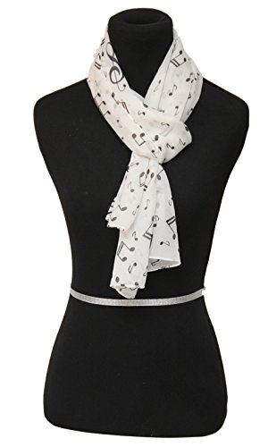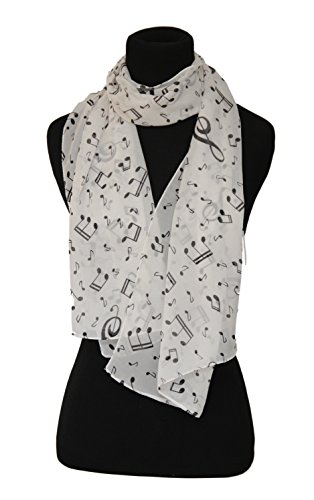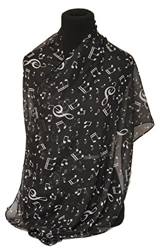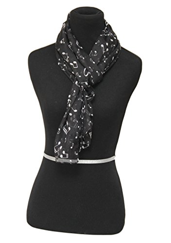 Product Description Black/White silk like feeling scarf perfect for music teachers. Show off your love for music with this polyester music themed scarf. Anyone who plays the piano will love this music and piano themed scarf. 0