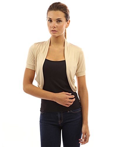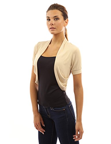 Short Sleeve Pleated Sides Crop Bolero Shrug Cardigan Top. Model in pictures is 5 feet 8 inches (173cm) tall wearing size S.