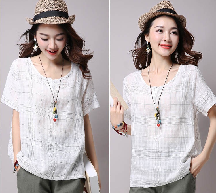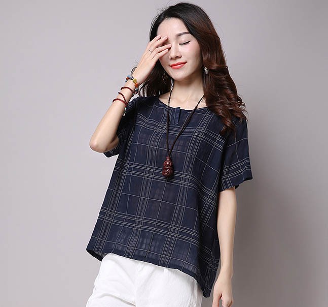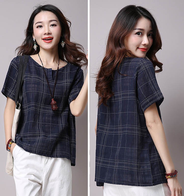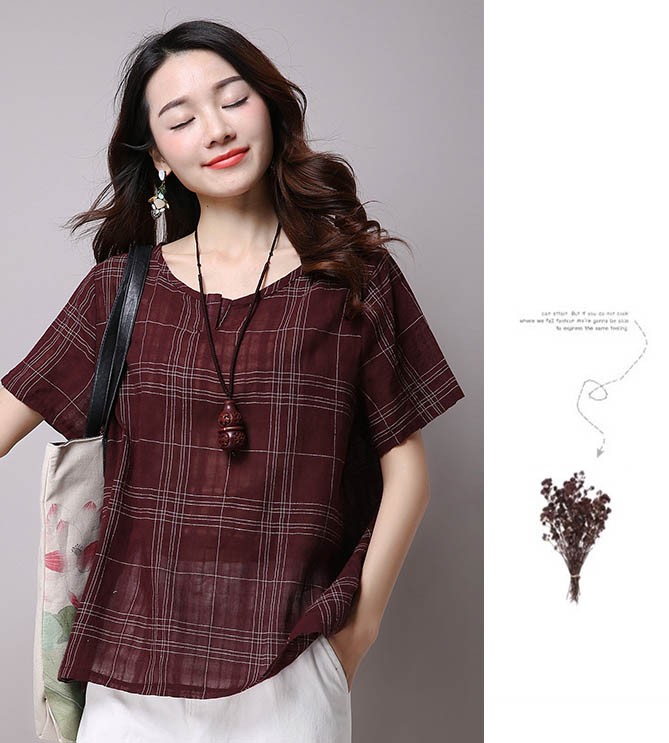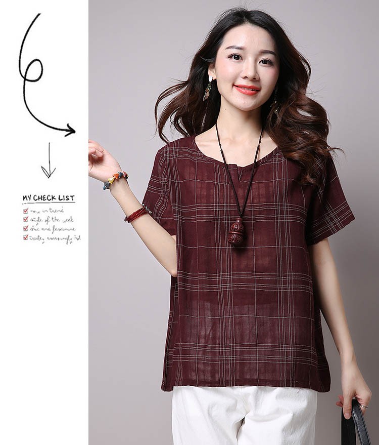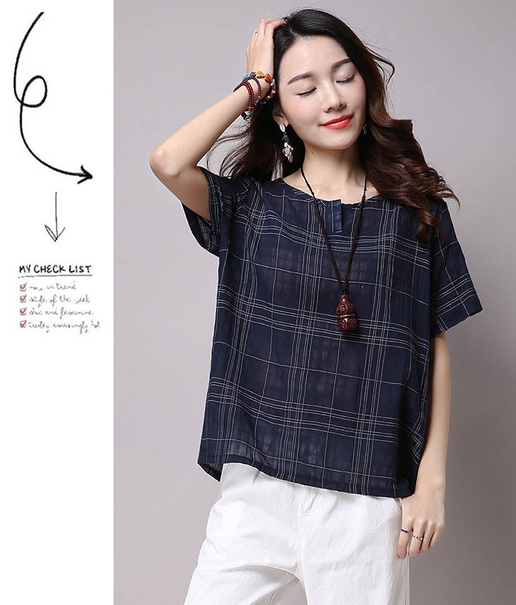 【入荷後営業日2,3日以内出荷予定 通関待ちや不良により出荷遅くなる場合はメールにてご連絡いたします。メール受信設定によっては正常に受信されない場合はございますので、 弊社からのメールを予め受信頂くようご設定くださいませ。】 トップス シャツ Tシャツ チェック柄 ブロックチェック 半袖 半そで ラウンド襟 レディス レディース 春 新作 2018チェック柄半袖ゆったり麻綿混紡トップス弾力性なし◆サイズ:M着丈62肩幅41袖丈19胸囲108L着丈63肩幅42袖丈20胸囲112XL着丈64肩幅43袖丈21胸囲1162XL着丈65肩幅44袖丈22胸囲120◆素材:コットン85%+リネン15%