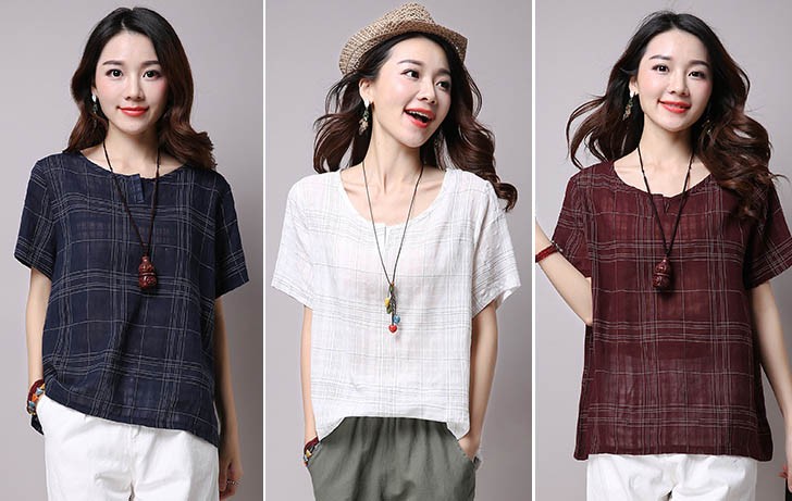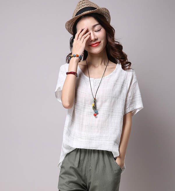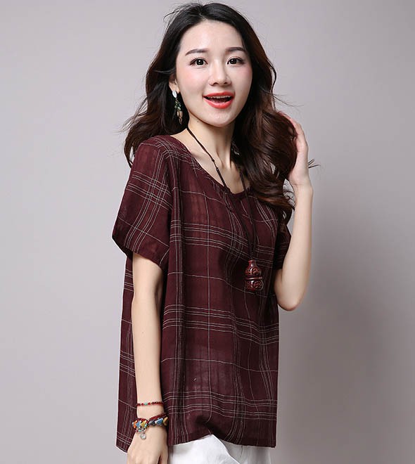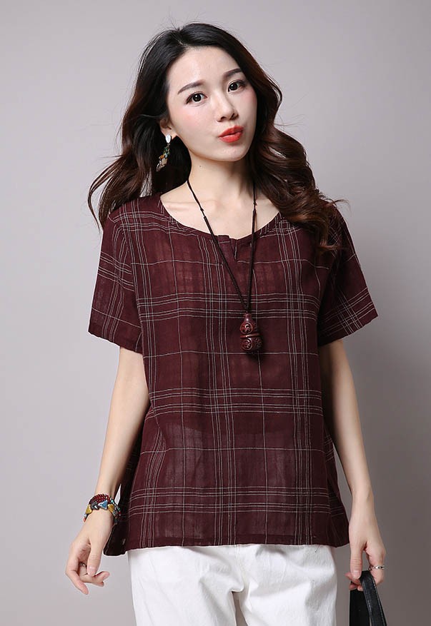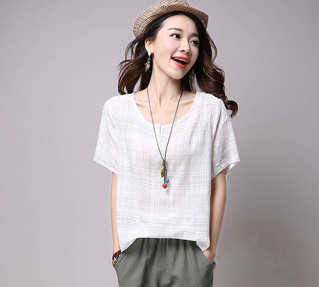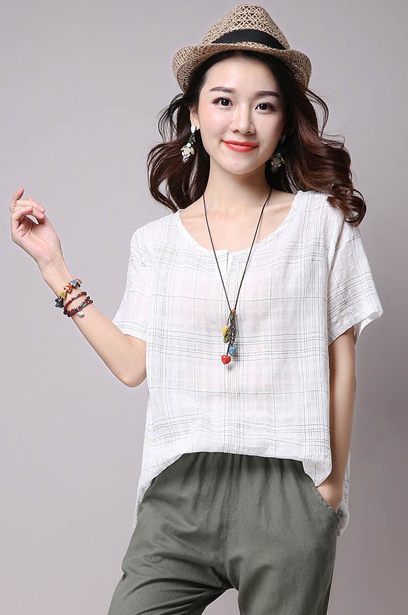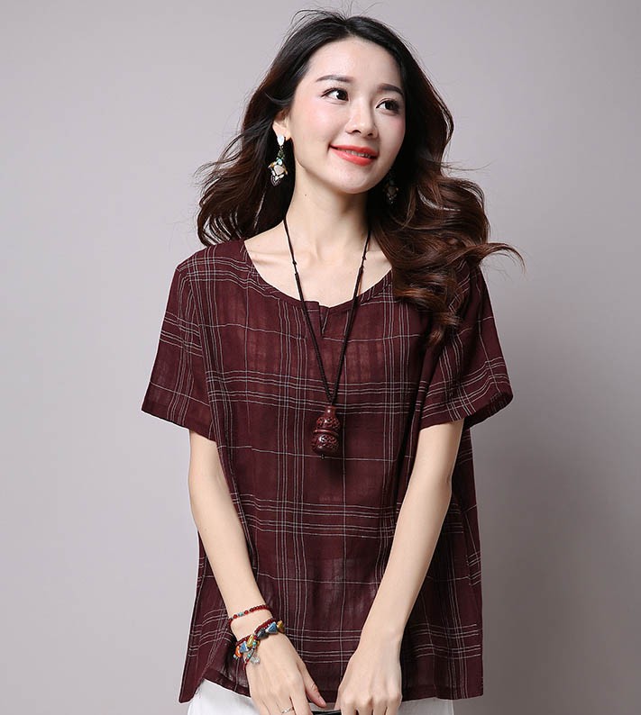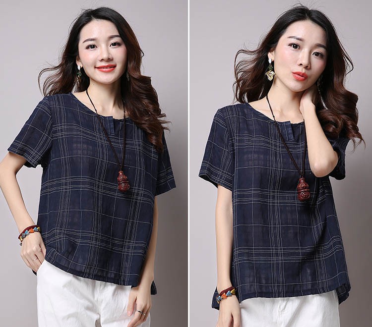 【入荷後営業日2,3日以内出荷予定 通関待ちや不良により出荷遅くなる場合はメールにてご連絡いたします。メール受信設定によっては正常に受信されない場合はございますので、 弊社からのメールを予め受信頂くようご設定くださいませ。】 トップス シャツ Tシャツ チェック柄 ブロックチェック 半袖 半そで ラウンド襟 レディス レディース 春 新作 2018チェック柄半袖ゆったり麻綿混紡トップス弾力性なし◆サイズ:M着丈62肩幅41袖丈19胸囲108L着丈63肩幅42袖丈20胸囲112XL着丈64肩幅43袖丈21胸囲1162XL着丈65肩幅44袖丈22胸囲120◆素材:コットン85%+リネン15%