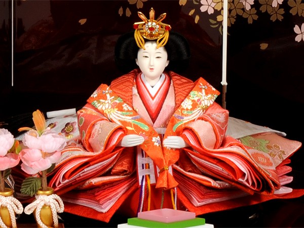 親御様、お子様、縁者様の健康と発展を願いながら職人が丁寧に仕上げた雛人形飾り/雛人形が初節句のお祝いにはなを添えます。