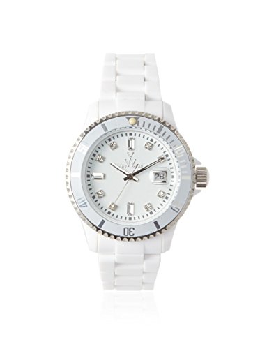 ToyWatch Plasteramic Stainless Steel & Resin White Womens watch Model# PCLS02WH. The watch case is crafted from plasteramic (plastic/ceramic) and is presented on the plasteramic bracelet, Stainless steel & White Uni-directional Rotating Bezel, White dial, silver tone & luminous hand indicators, swarovski crystal hour markers, Seconds hand, Date display at the 3 o'clock position, Scratch Resistant Sapphire Crystal, Steel & white crown, Quartz movement, Water resistant to 50 meters/165 feet. Two Year Limited Warranty.As all of our watches, this ToyWatch Plasteramic Ladies watch is BRAND NEW, and comes in its original packaging with the warranty card and papers!