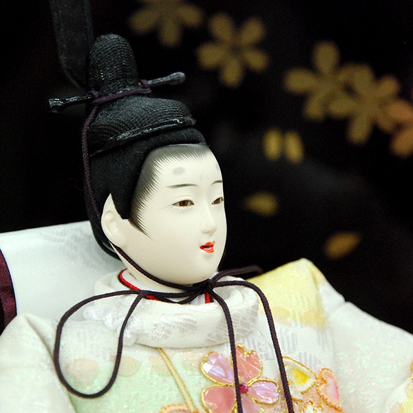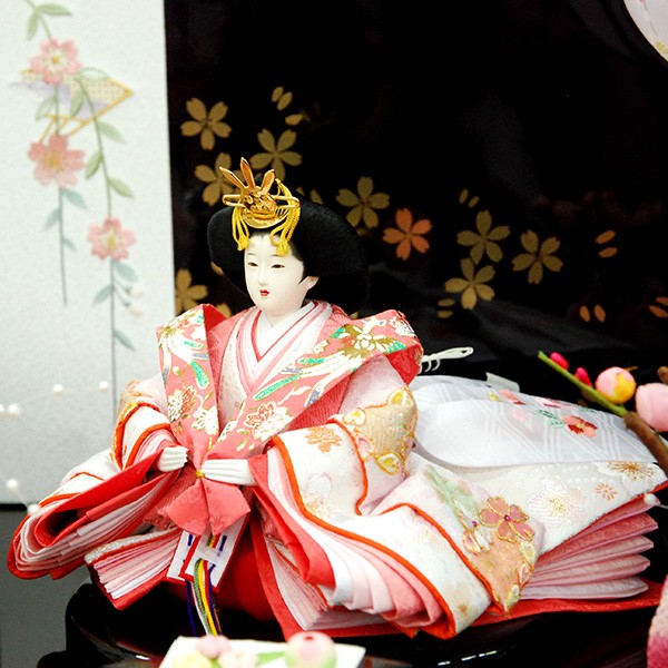 ・台座・屏風等には落ち着いた色目の雛人形セット。