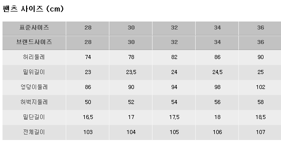 | 사이즈 | 74(28),78(30),82(32),86(34),90(36) |