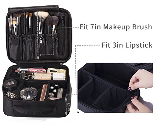 DIMENSION: 9.8" x 9.1" x 3.5". It will be very handy while traveling. Easily carry cosmetics makeup tools like lipstick, eye shadow, or men's shaving kit, fit 7in makeup brush and 3in lipstick