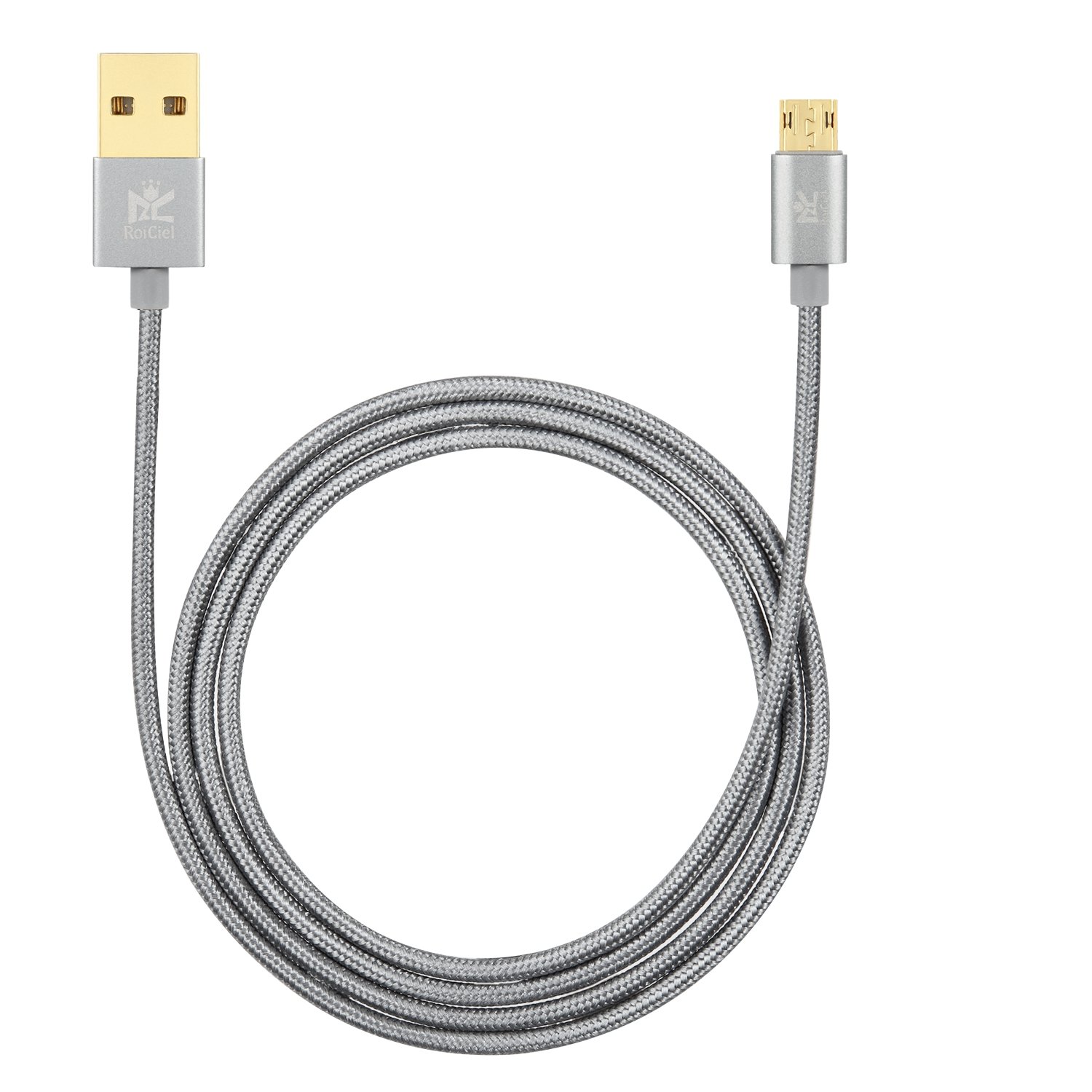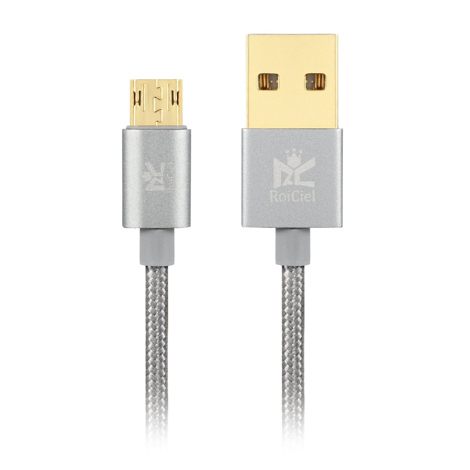 RoiCiel Fast Charge Data Transfer Double Sided Insertion MicroUSB Cable High Endurance Nylon Gray 1 m