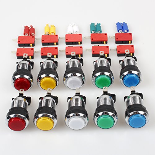 EG Starts 2 Player Classic Arcade Contest DIY Kits USB Encoder To PC Joystick + 8 Ways Sticker + Chrome Plating LED Illuminated Push Button 1 & 2 Player Coin Buttons For Arcade Mame Raspberry Pi Games