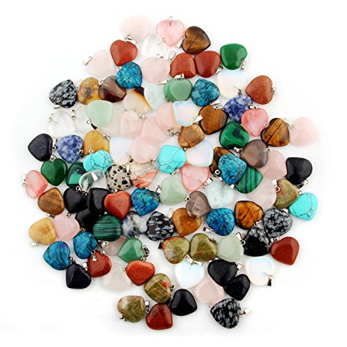 Mutilcolor Heart Shape Healing Chakra Beads Crystal Stone Quartz Pendants for Necklace Jewelry Making