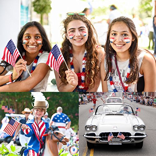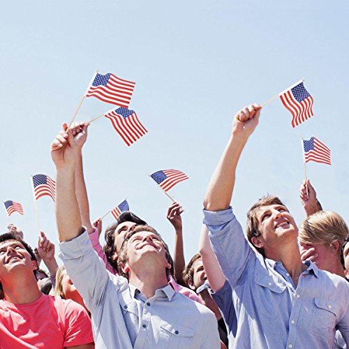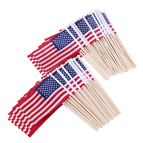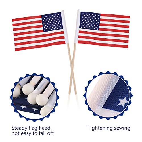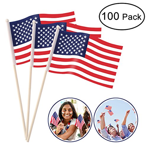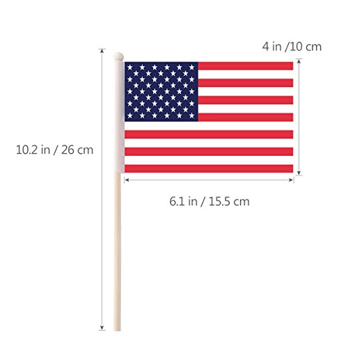 OULII 100 Pack Mini American Flags Hand Held US Flags on Stick with Round Top 4" x 6"