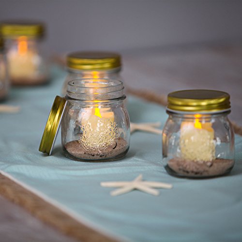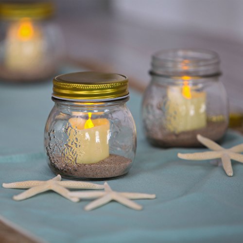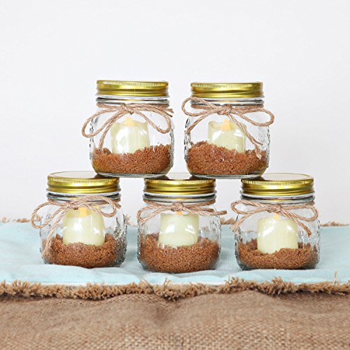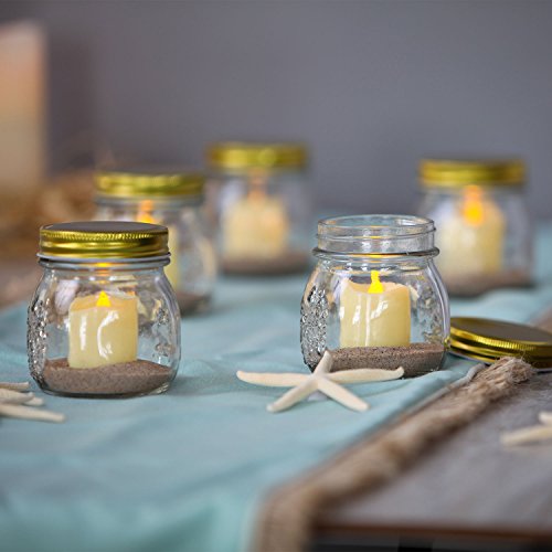 5 Ivory Flameless Votives in Glass Mini Mason Jars, Warm White LEDs, Versatile, Indoor/Outdoor Use, Batteries Included