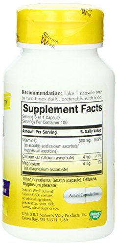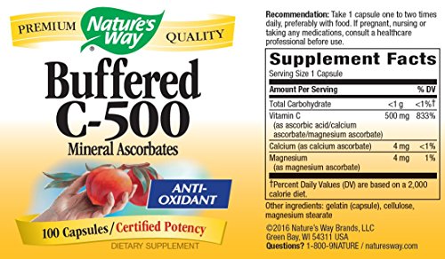 Studio : Nature's Way Publisher : Nature's Way Binding : Health and Beauty Product Description Vitamin C buffered with the beneficial minerals calcium and magnesium, to ensure less irritation on the stomach. Vitamin C provides antioxidant protection for many of the body's' important enzyme systems. White blood cells utilize Vitamin C to help produce cytotoxic enzymes which they use to eliminate foreign matter. It also helps strengthen collagen, a major connective protein. Vitamin C also plays an important role in the P450 enzyme detoxification system. 0