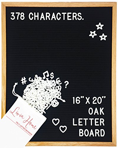 Letter Board - Black Felt with 378 White 1 inch Plastic Changeable Characters - Solid Oak Frame 16 x 20 Inch - With 7x5 inch Canvas Storage Bag - Vintage Desktop Display by Livia Home