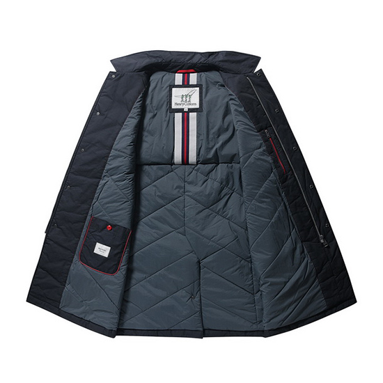 - 잔조직 텍스쳐 디자인의 모던한 남성 코트.