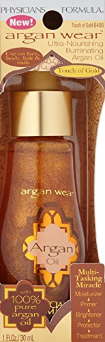 100% Pure Argan Oil, known as "liquid gold" for its rich conditioning benefits, can improve skin's brightness, tone, texture and elasticity. Weightless multi-tasking miracle combines the benefits of a moisturizer, primer, brightener, protector & treatment in one. This magical ingredient from Morocco transforms skin, smoothing the appearance of fine lines, brightening dull skin and renewing suppleness, helping to enhance skin's youthful looking glow without ever leaving a greasy feel or finish. The silky texture absorbs instantly and creates an instant boost of radiance so you can apply your makeup flawlessly.Feature