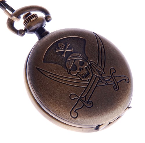 -. Title : Pocket Watch Steampunk Pirates Skull Dagger Motif Bronze Case with Chain Full Hunter Cosplay PW-52
