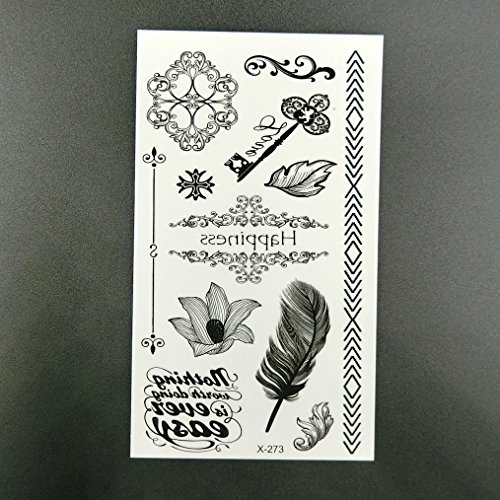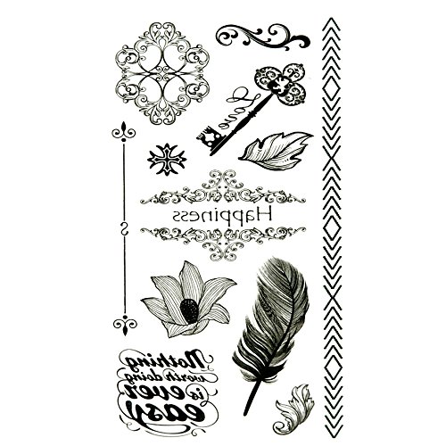 Oottati Small Cute Temporary Tattoo Flower Feather Key (2 Sheets)