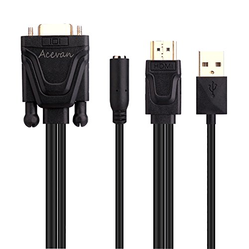 Acevan HDMI to VGA Adapter Converter Cable,1080P Converter Cable with 3.5mm Audio Jack for HDTV, Projector, Display, Laptop Desktop Computer Plug and Play