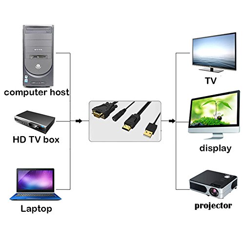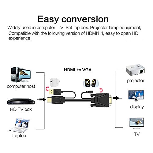 This HDMI to VGA converter cable enables you to connect most personal computers, HD TV box, computer host which with HDMI interface to projector, display with VGA interface for HDTV