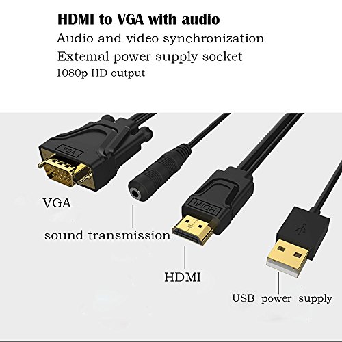 Audio and video synchronization. Audio and video can be transported at the same time with this HDMI to VGA converter cable with audio jack