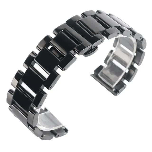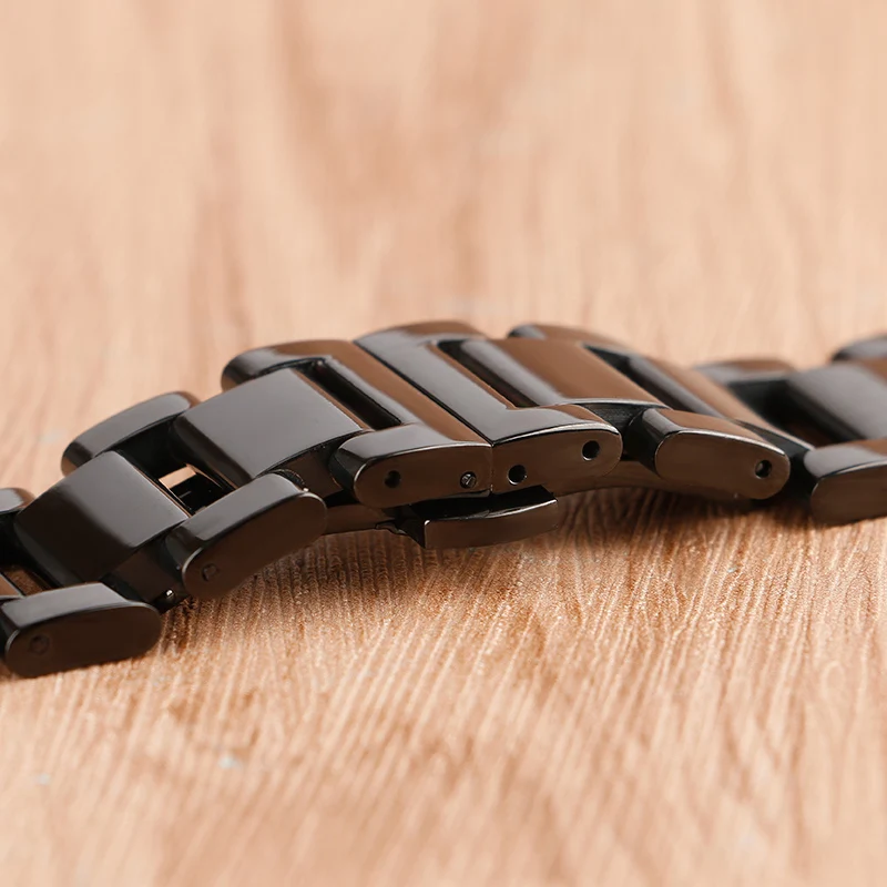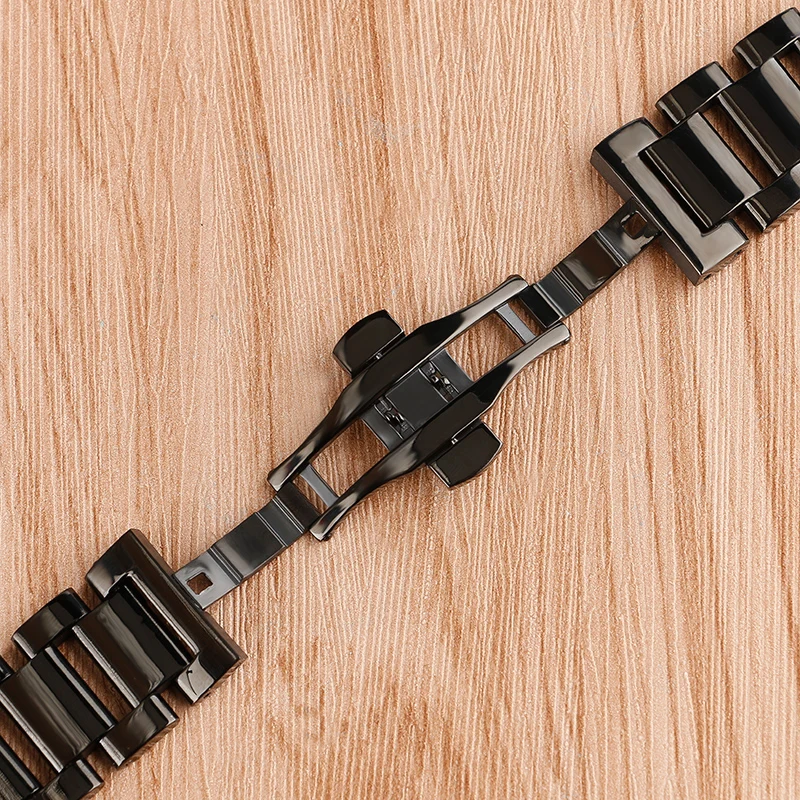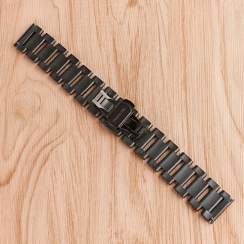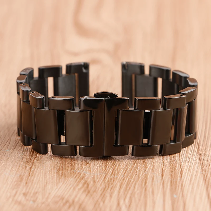| [해외]18 미리메터 20 미리메터 22 미리메터 남성 솔리드 스테인레스 스틸 시계 밴드 블랙 팔찌 손목 럭셔리 배포 버클 2 봄 바 |