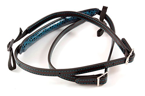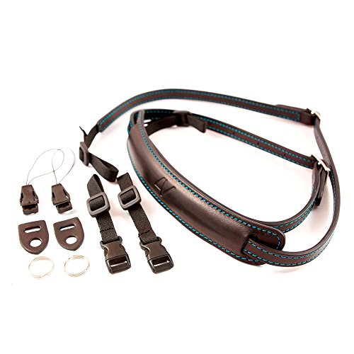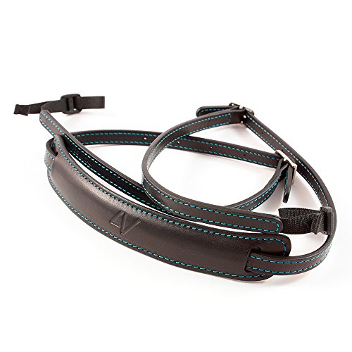 4V Design Lusso Tuscany Leather Slim Handmade Leather Camera Strap w/ Universal Fit Kit, Black/Cyan (2SP01BVV0930)
