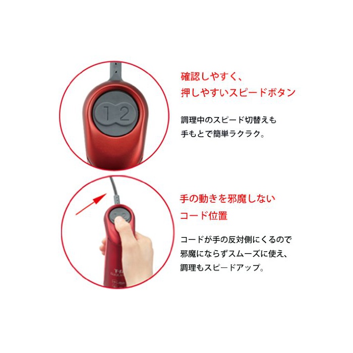 원본상품명: ティファル ハンドミキサ スティックミキサ 「クリック&ミックス」 ルビレッド HB460GJP