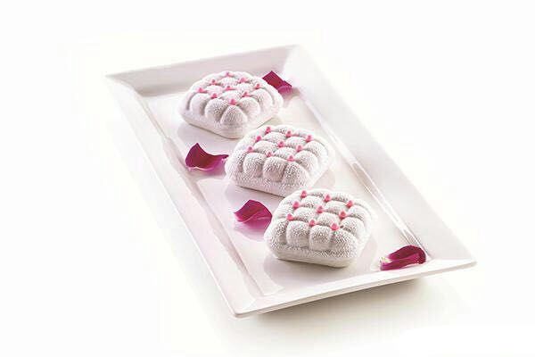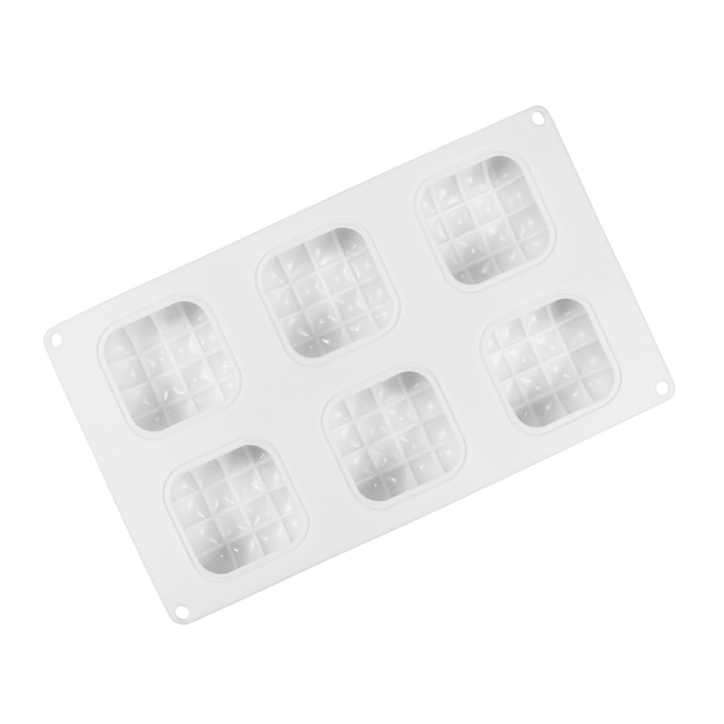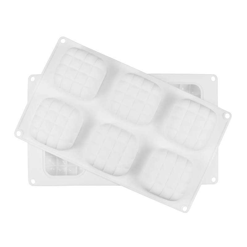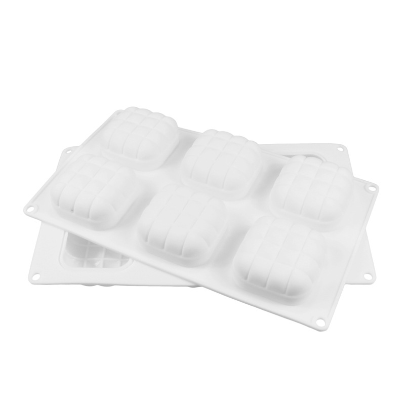 品名:意大利同款6连枕头形方格慕斯模蛋糕模具白色硅DI胶Y烘焙模翻糖戚风蛋糕模(新款)