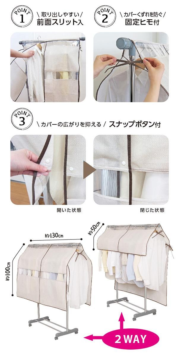 fk094igrjs幅約130cmのハンガーラックシングルバータイプにご使用いただけますお好みに合わせて、2通りの長さで使い分けができます サイズ (約)幅130×前面100×背面50cm 個装サイズ:18×4×35cm 重量 個装重量:299g 素材・材質 本体生地:ポリプロピレン 窓:ポリエチレン 製造国 中国 パイプハンガーに掛けた衣類をホコリから守る 幅約130cmのハンガーラックシングルバータイプにご使用いただけますお好みに合わせて、2通りの長さで使い分けができます ご注文後3~4営業日後の出荷となります