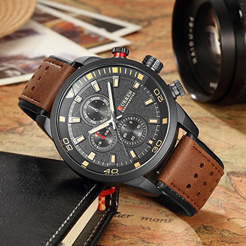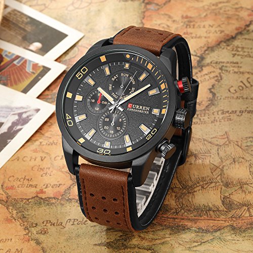 -. Title : CURREN Original Brand Men's Sports Waterproof Leather Strap Wrist Watch 8250 Brown Black