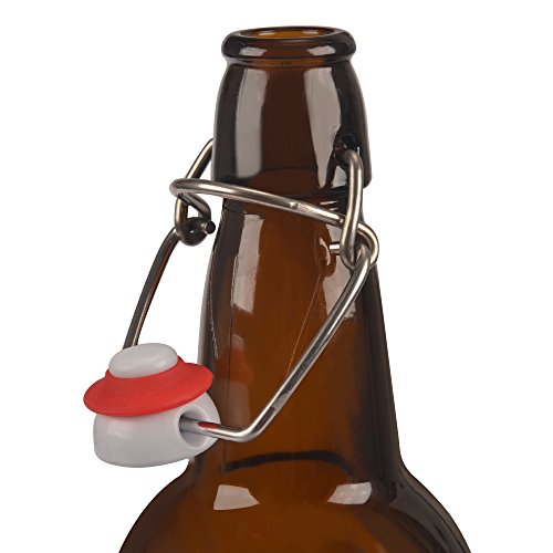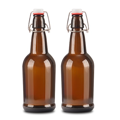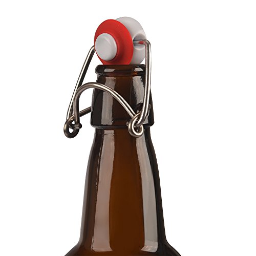 Product Description These Amber Glass Beer Bottles with Easy Swing Caps are perfect for your home brewing or hosting parties. They have a large 16 oz capacity and they have rubber caps which easily seal with sturdy wire to preserve the freshness of your beverage or brew. Enjoy beer, soda, kombucha, kefir, and more! Beer lovers can now reduce the environmental impact of their beer consumption by using these refillable and reusable glass bottles. 0