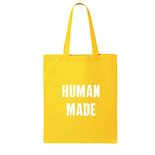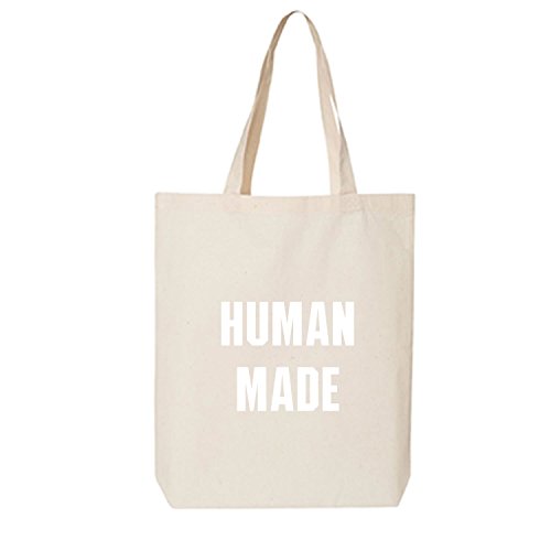 Product Description This cotton canvas tote bag features "HUMAN MADE" on the front. 15" Wide x 16" High x 3" Deep with 20" handles. Printed in the USA on an imported bag. 0