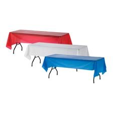 Product Description Rectangular table covers are designed to fit standard-size cafeteria and conference tables. Each table cover is made of plastic. 0