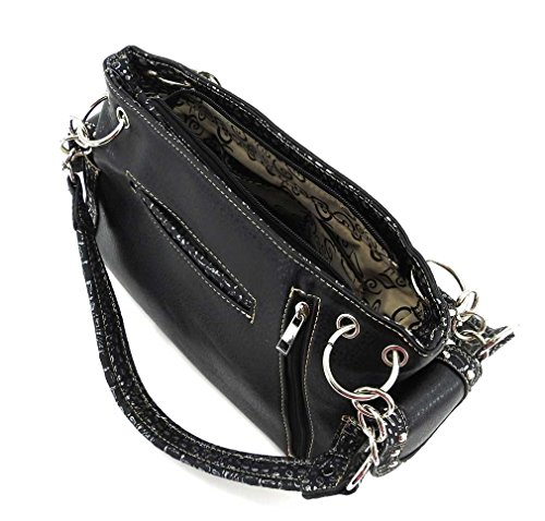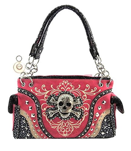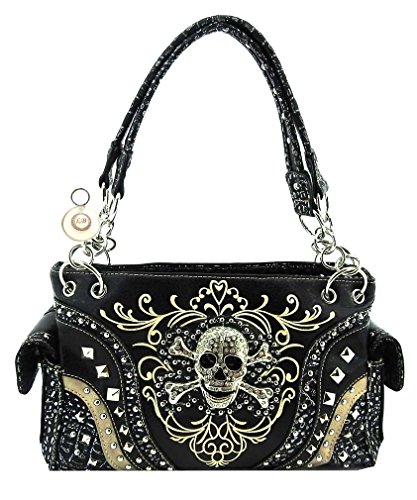 -. Brand : Western LuxeBag -. Department : womens -. Feature : Western skull handbag and wallet set, plus LB key chain / Faux leather and top zip closure / Handbag size : 13(L) by 8(H) by 5(W) inches (drop length 10 inches) / Concealed gun case size : 9(L) x 5(H) inches / More details in the description -. Model : WGSK939W22-SET -. NumberOfItems : 2 -. PackageQuantity : 2 -. ProductGroup : Shoes -. ProductTypeName : HANDBAG -. Size : Medium -. Title : Western Skull Purse and Wallet Set with Metal Skull
