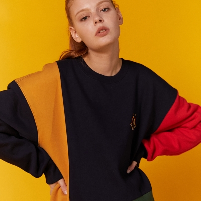 컬러를 믹스매칭 시켜서 90년대 무드를 연출 하였으며, 앞에 시그니쳐 자수를 넣었습니다.