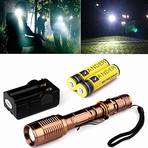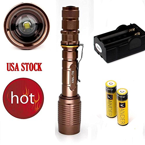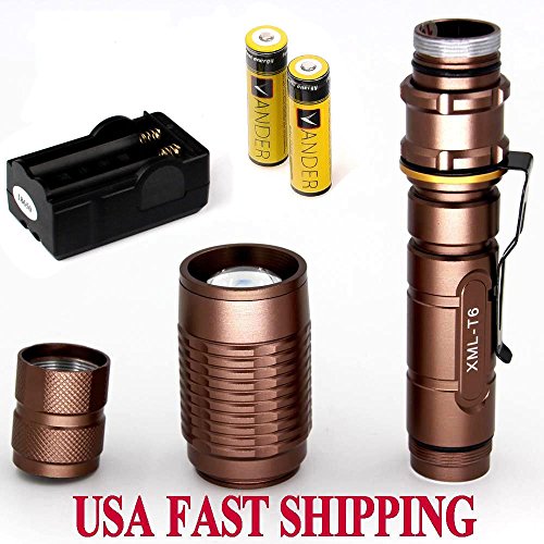 1000 Lumen Zoomable LED Flashlight XM-L T6 Torch+2x18650 Battery&Charger