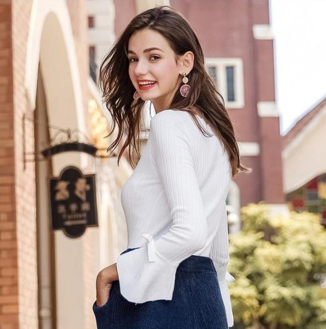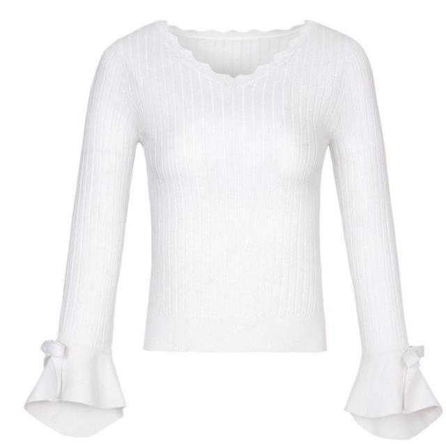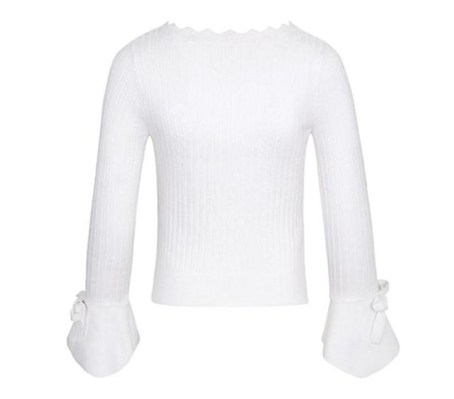・キーワード:フレア 大人かわいい 万能 フェミニン おしゃれ 2018年秋トレンド ホワイト 薄手 ニット