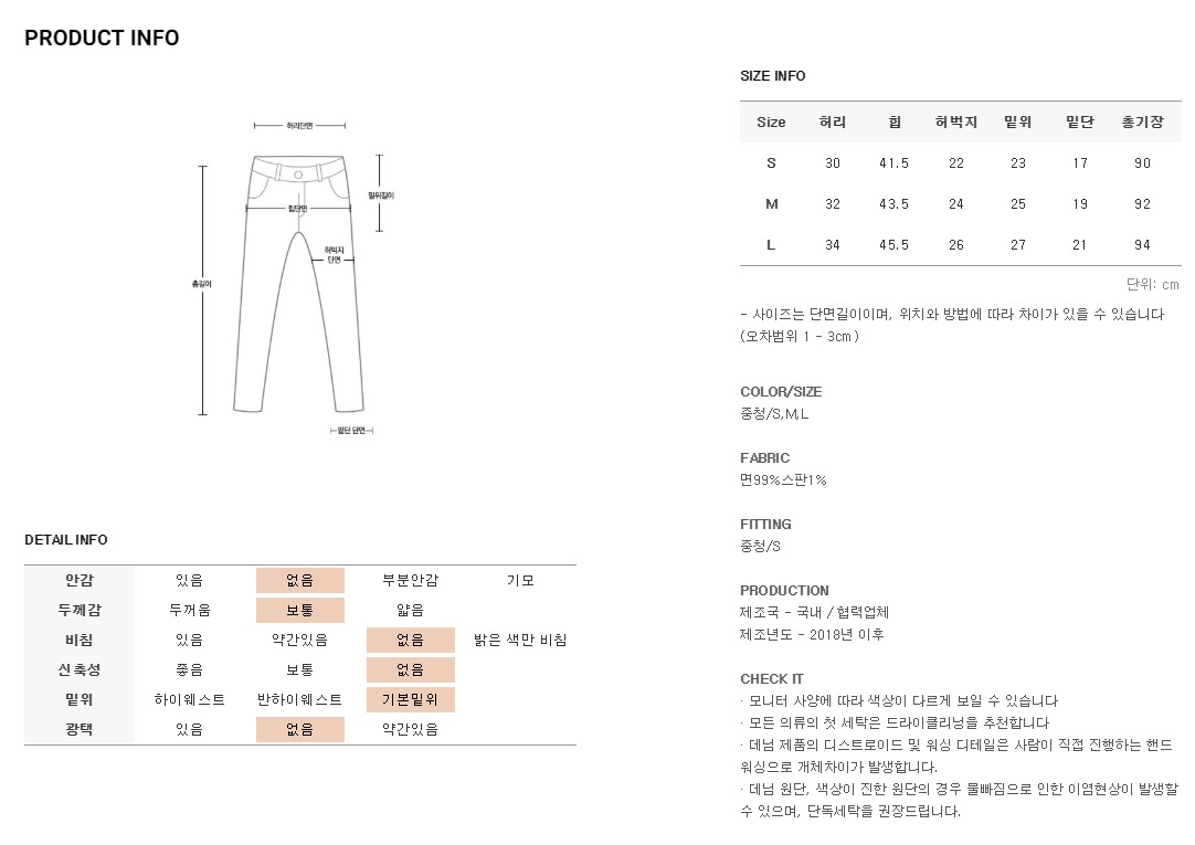 피팅한 제품의 컬러는 중청 이며