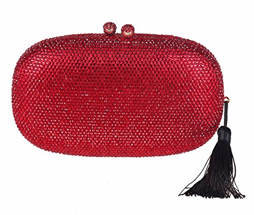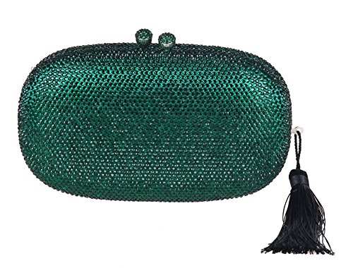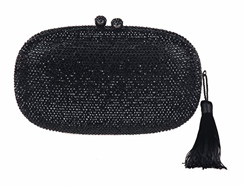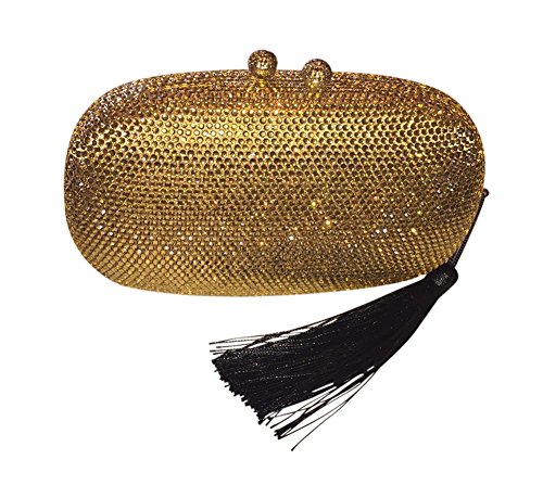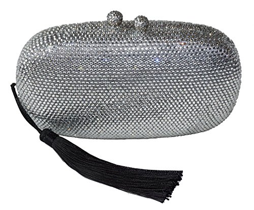 Chicastic Rhinestone Crystal Oval Hard Box Bridal Wedding Evening Clutch With Tassel