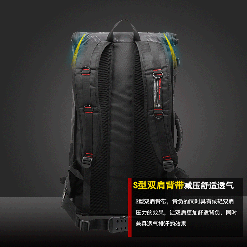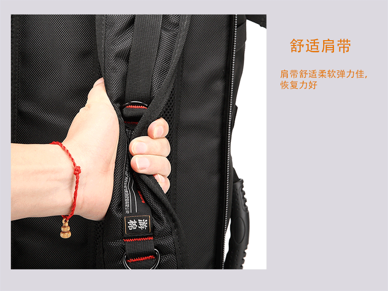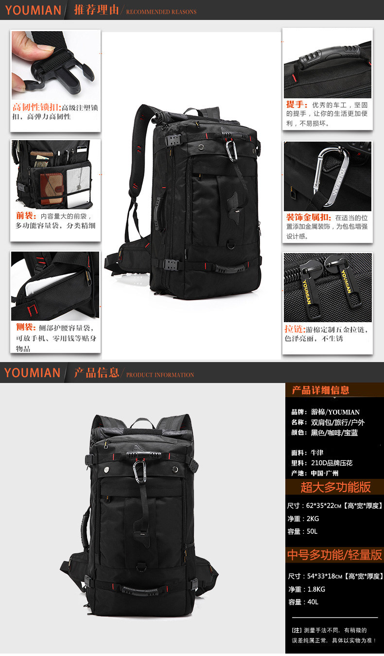 2. Multifunctional version of the play dates with red reinforcement! The back has a wealth of breathable mesh and thick sponge, for carrying heavy items, have more pockets. Function is more complex, heavier!
