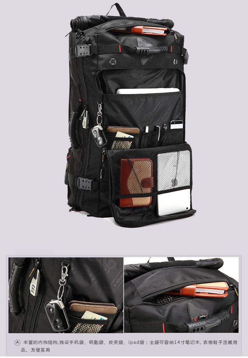 1. Large number [Dimensions: height 62 * 35 * thick 22CM width] feature-rich large capacity! Weight of 1.8kg, suitable for long distance travel use. Because it is large, be sure to purchase with caution this version!