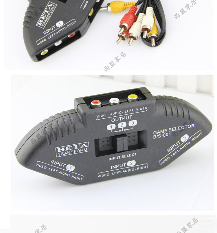 (3) Asbestos SB-S41VA four-way manual audio and video switcher in and out